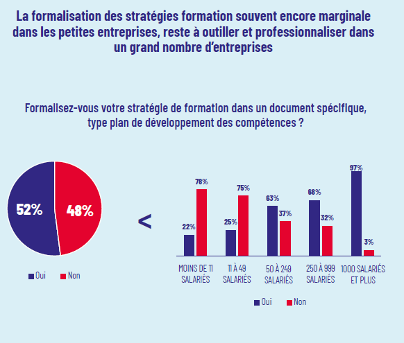 • 75 % des entreprises < 50 salariés sans plan de compétences formalisé