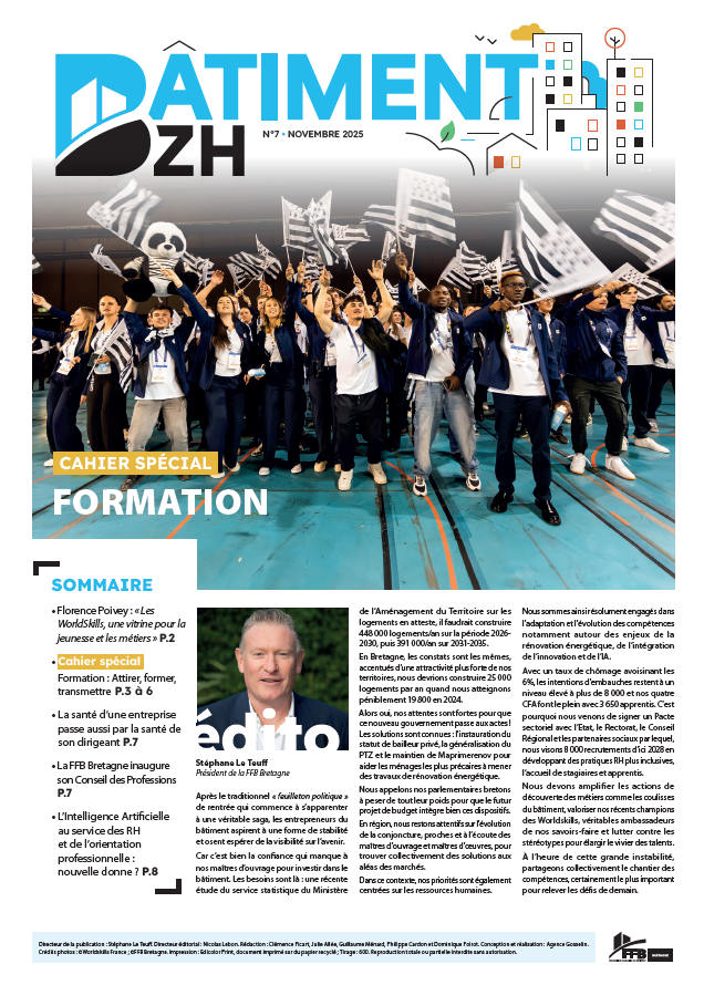 Le Journal Bâtiment Bzh met en valeur le savoir-faire des entrepreneurs du territoire. Retrouvez toute l’actualité du secteur du Bâtiment en Bretagne au fil des pages.