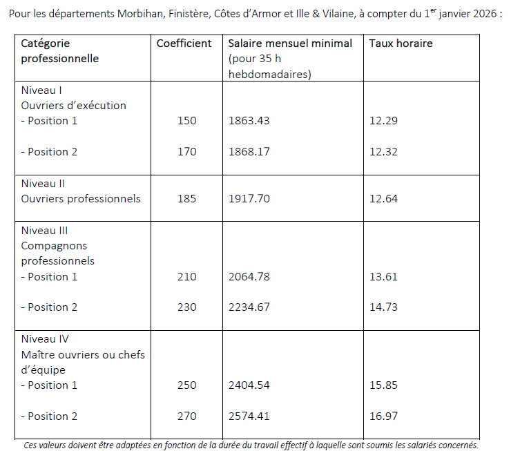 La Fédération Française du Bâtiment Bretagne organe représentatif de la branche, négocie avec les organisations syndicales des salariés les minimas qui s’applique en région.