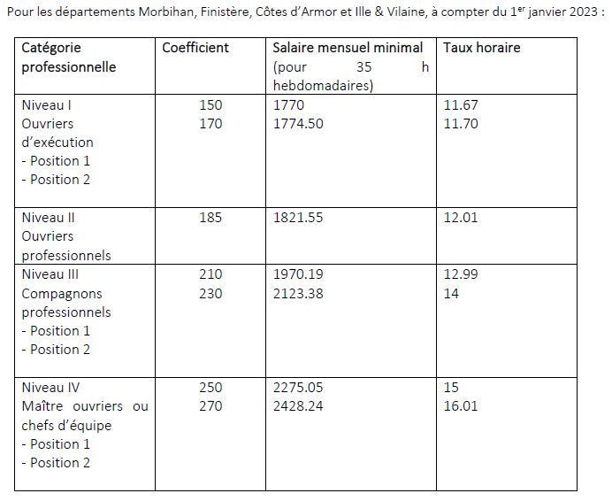 La Fédération Française du Bâtiment Bretagne organe représentatif de la branche, négocie avec les organisations syndicales des salariés les minimas qui s’applique en région.
